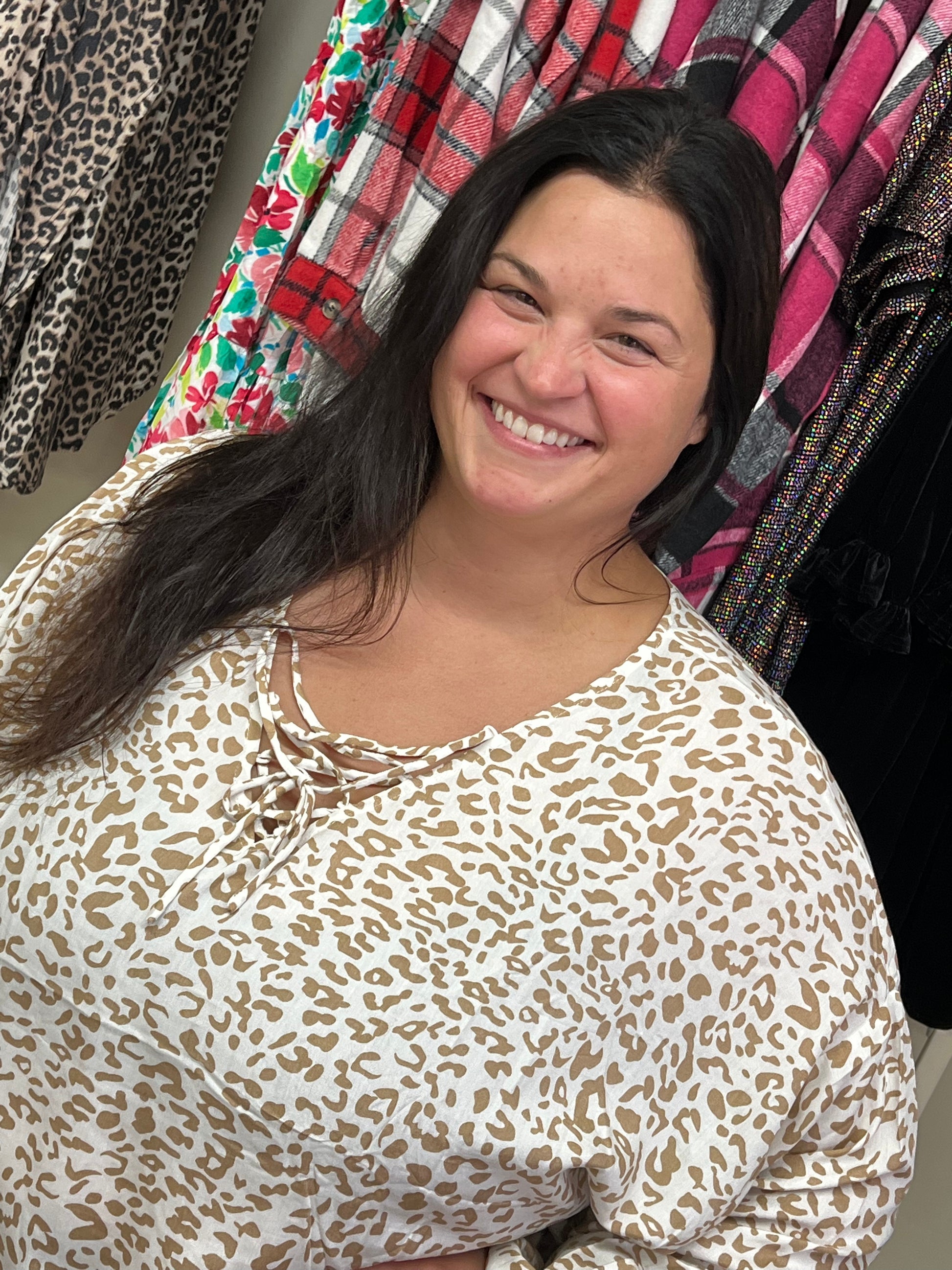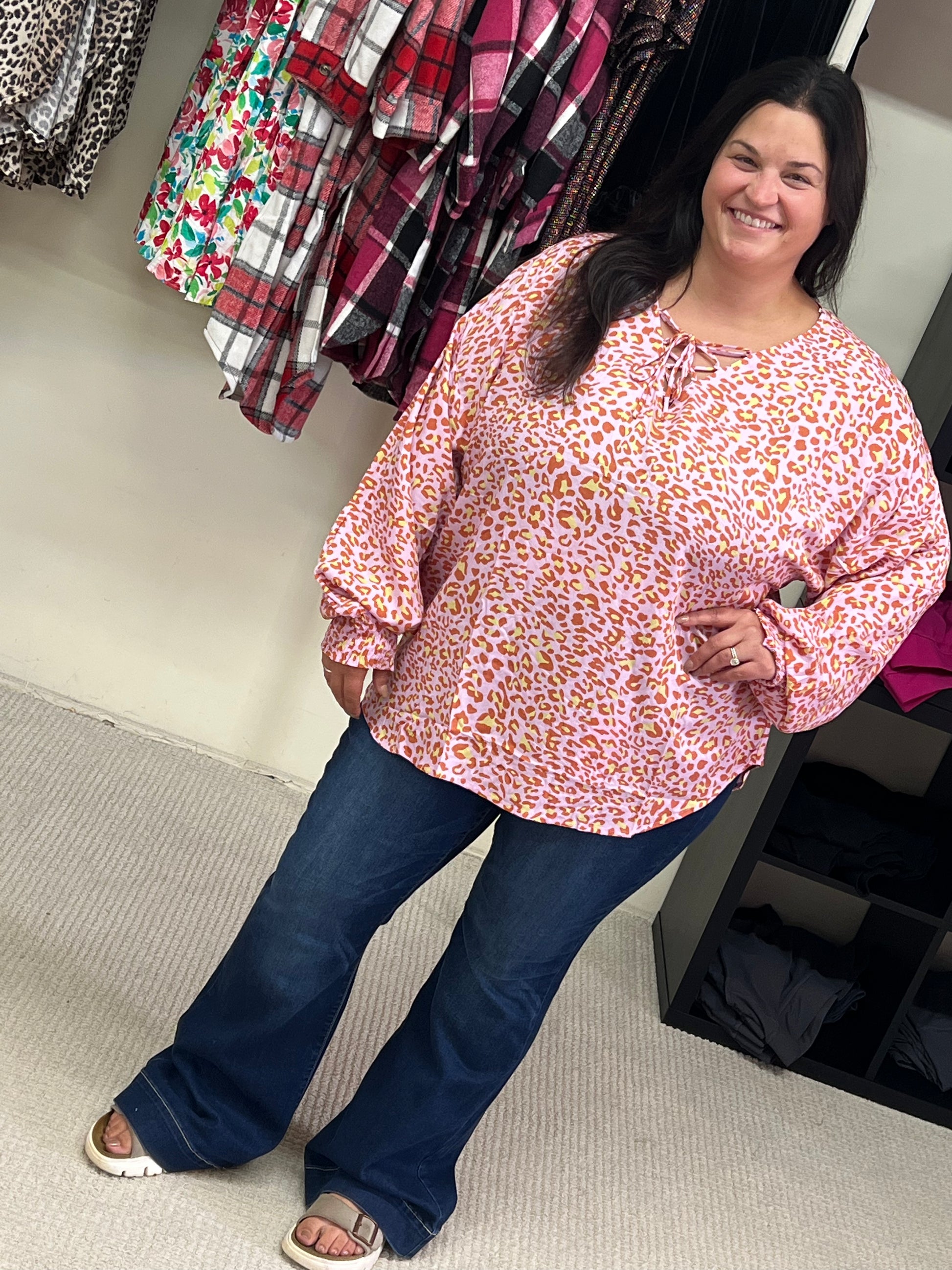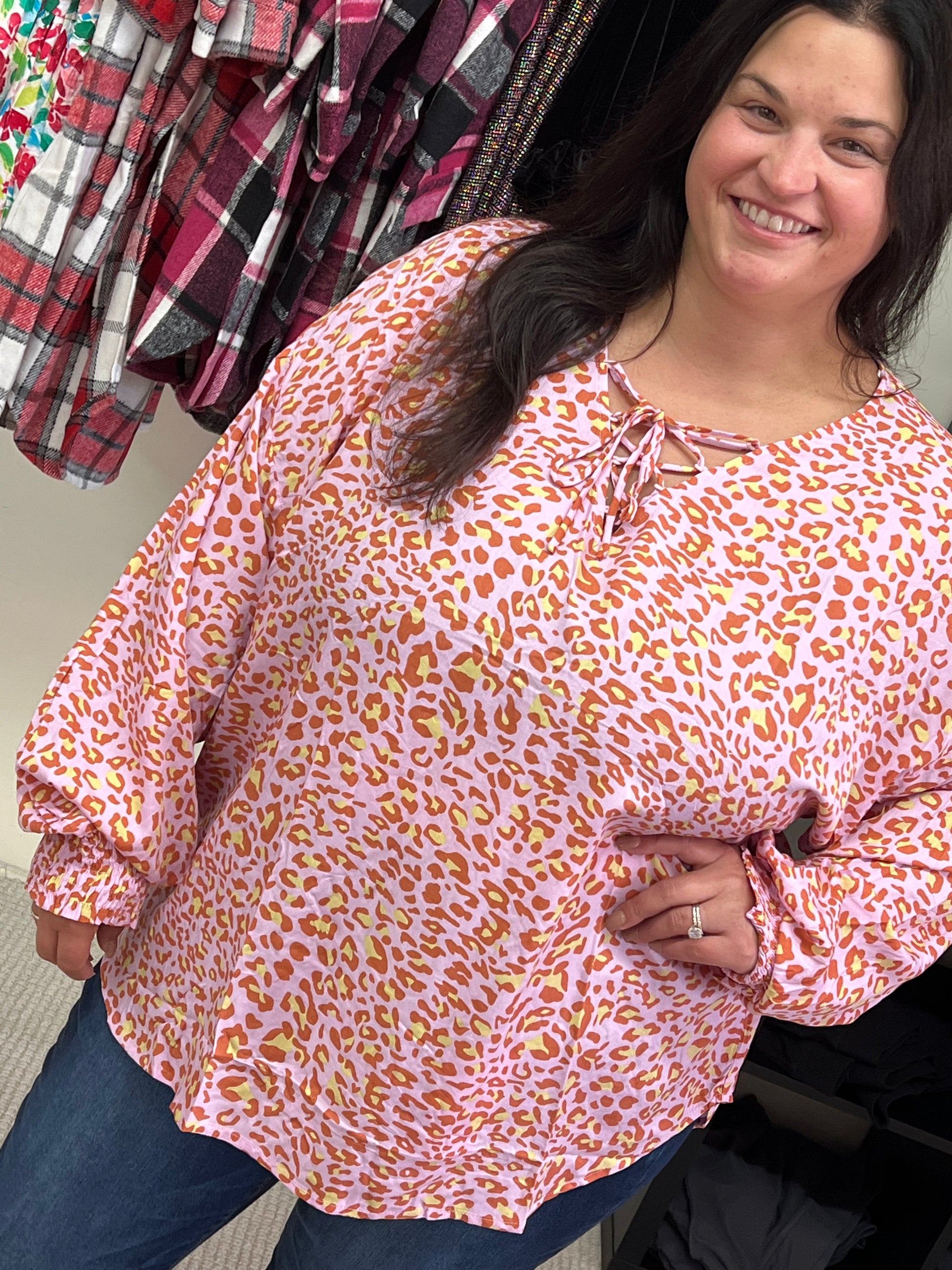 Curvy GiGiO Front Lace Up Loose Knit Top w/ Smocking Sleeve Cuff