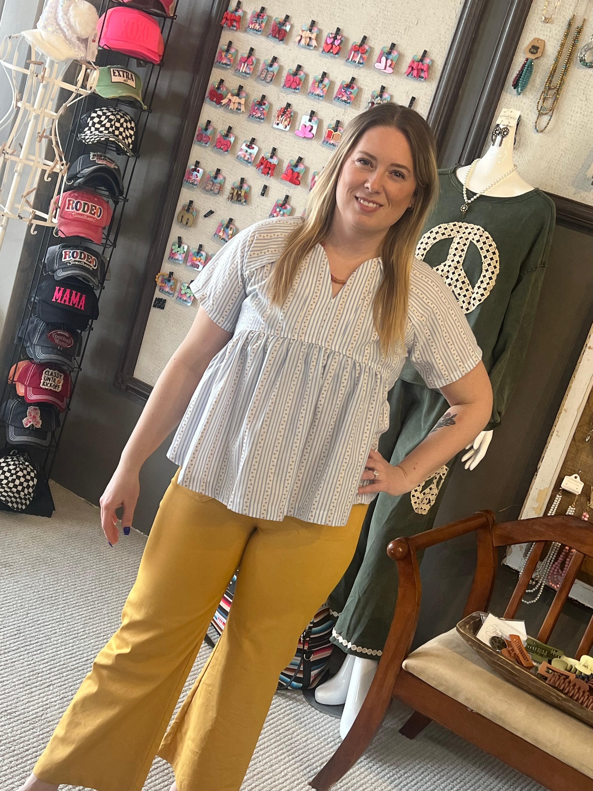 GiGiO Sky Blue Striped Short Sleeve Babydoll Top